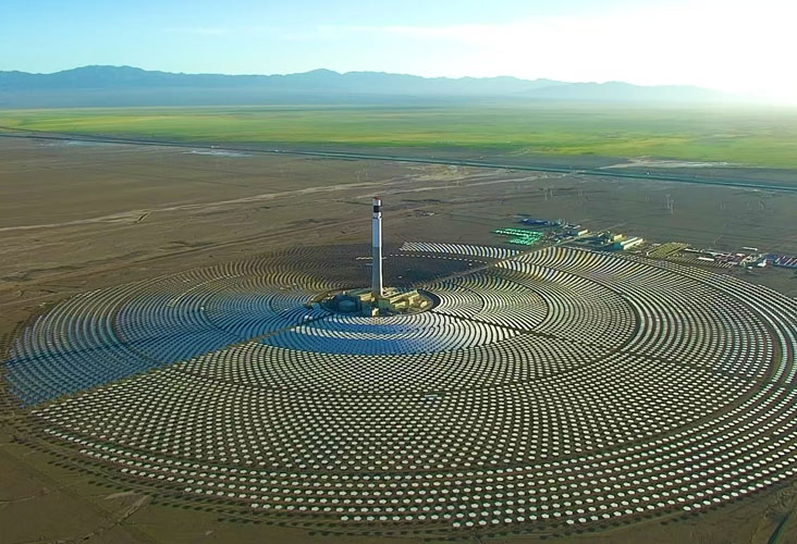 哈密光热发电项目为国家第一批太阳能热发电示范项目之一,也是新疆首个建成并成功投运的光热项目。项目采用发电效率最高,技术最先进的熔盐塔式发电技术,装机容量50MWe,项目选用东方电气高效率聚光集热技术,配置大容量、高参数储热系统,可以实现24小时不间断发电。